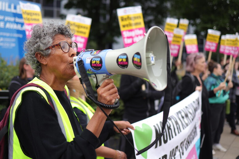 alcune persone che urlavano frasi contro i migranti come