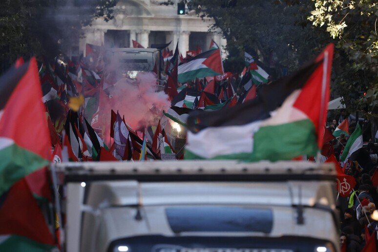 lanciati da alcuni partecipanti al corteo pro Pal a Roma contro