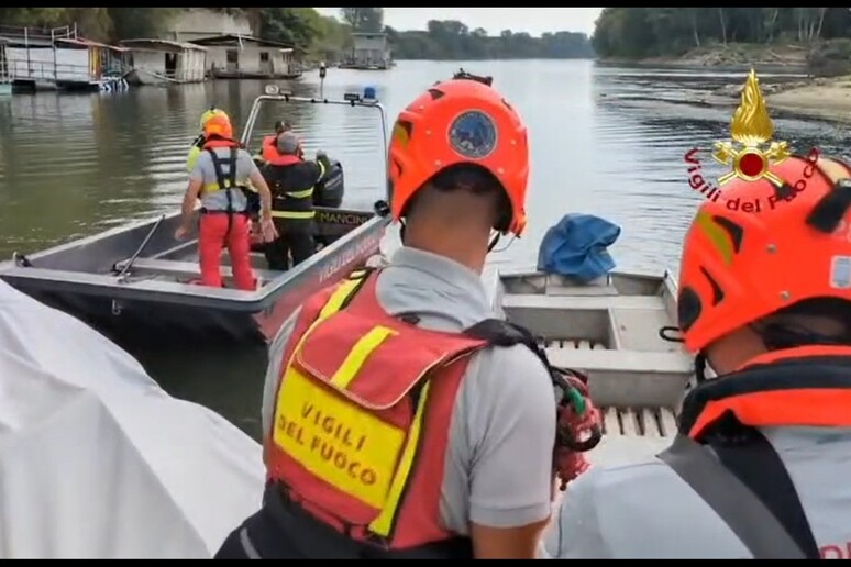 vigili del fuoco lo cercano nelle acque del fiume Po dove,alla