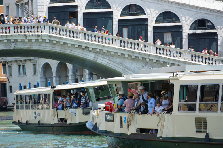 lasciato l'attracco di Rialto,in Canal Grande,carico di