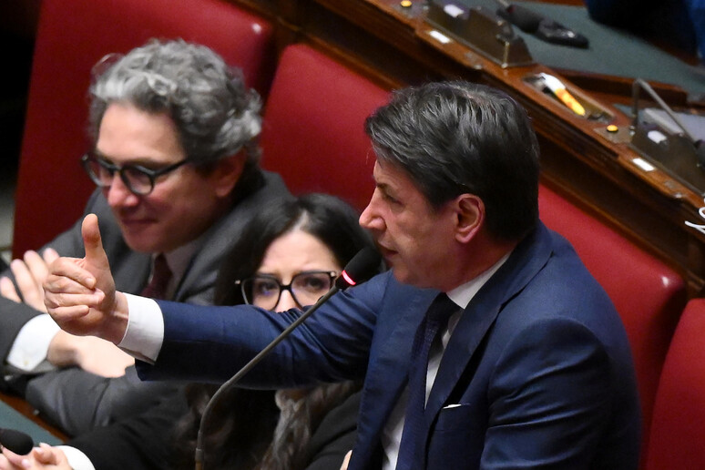 il leader M5s Giuseppe Conte in Aula alla Camera durante le